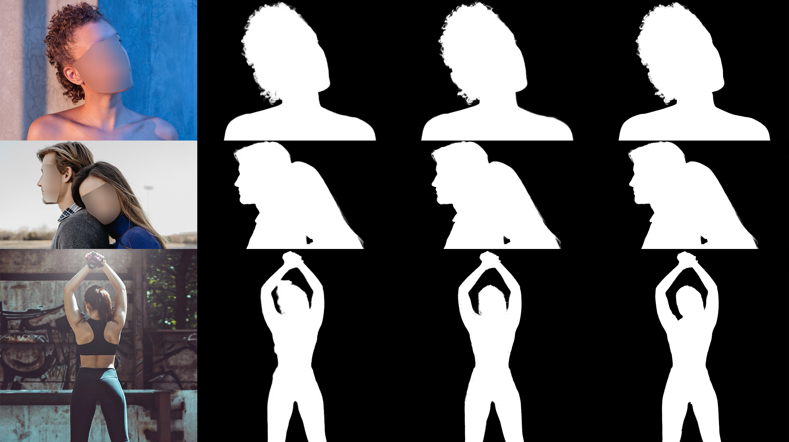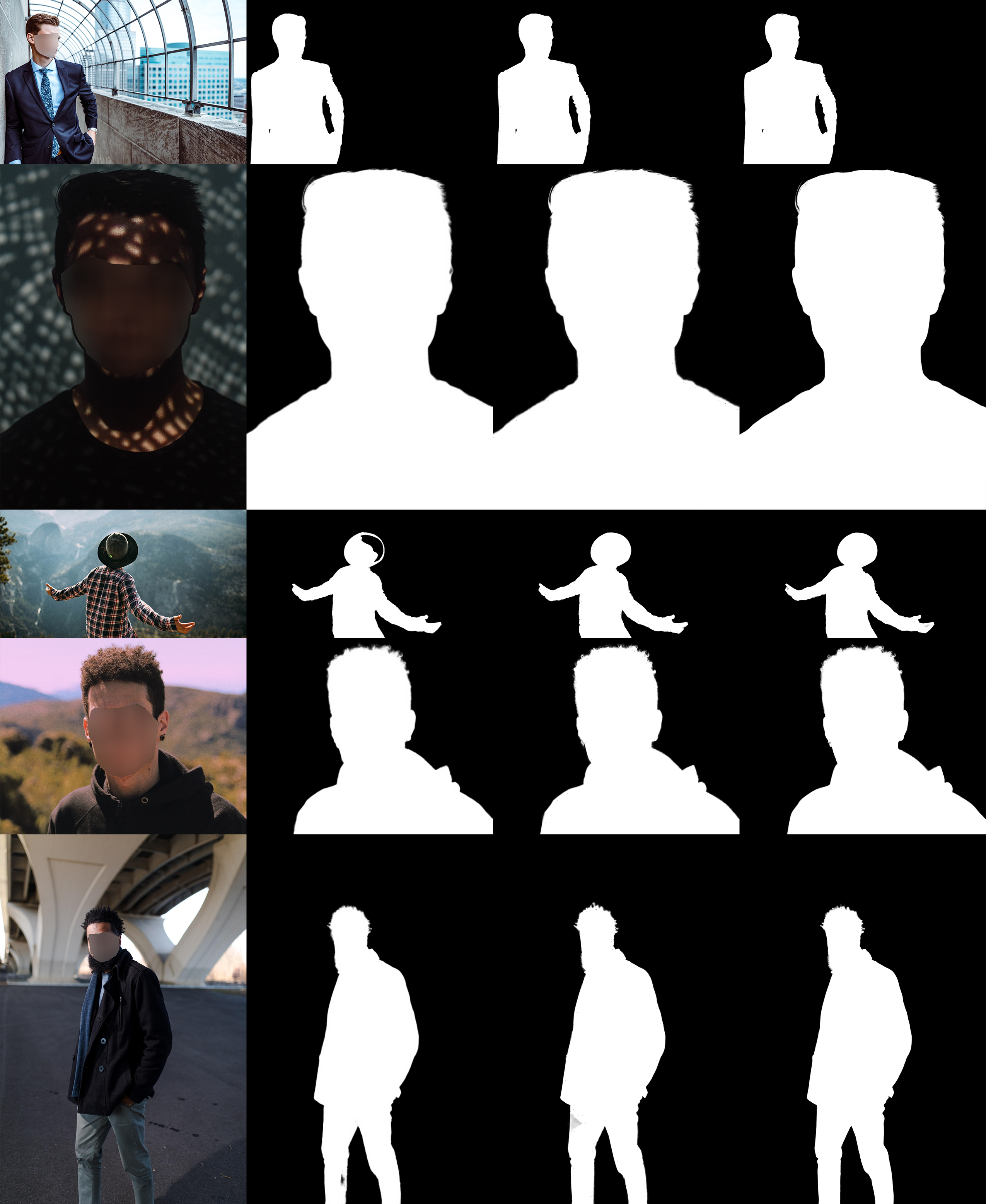Left to right: image, P3M-Net, ours, ground truth.
